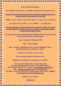 A special day whole day program practicing Generosity, Morality, and Meditation for invoke blessing for the coming New Year 2020